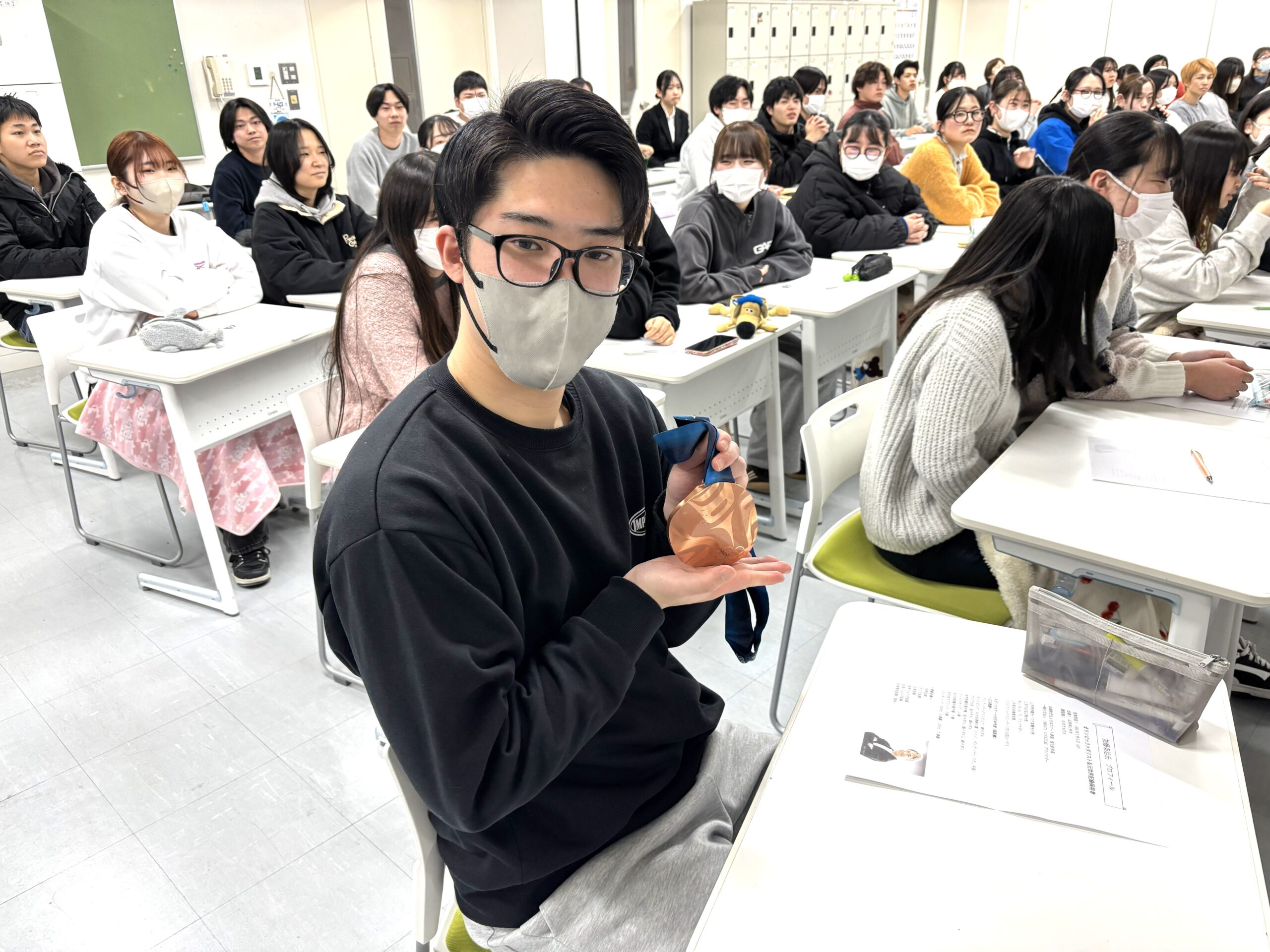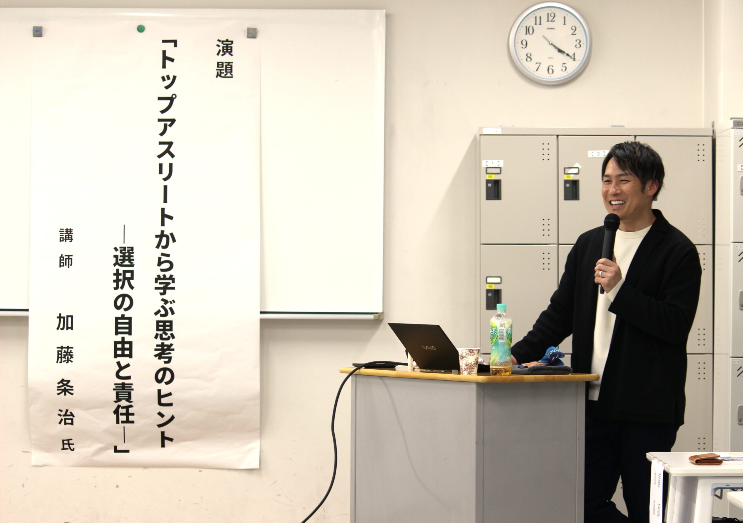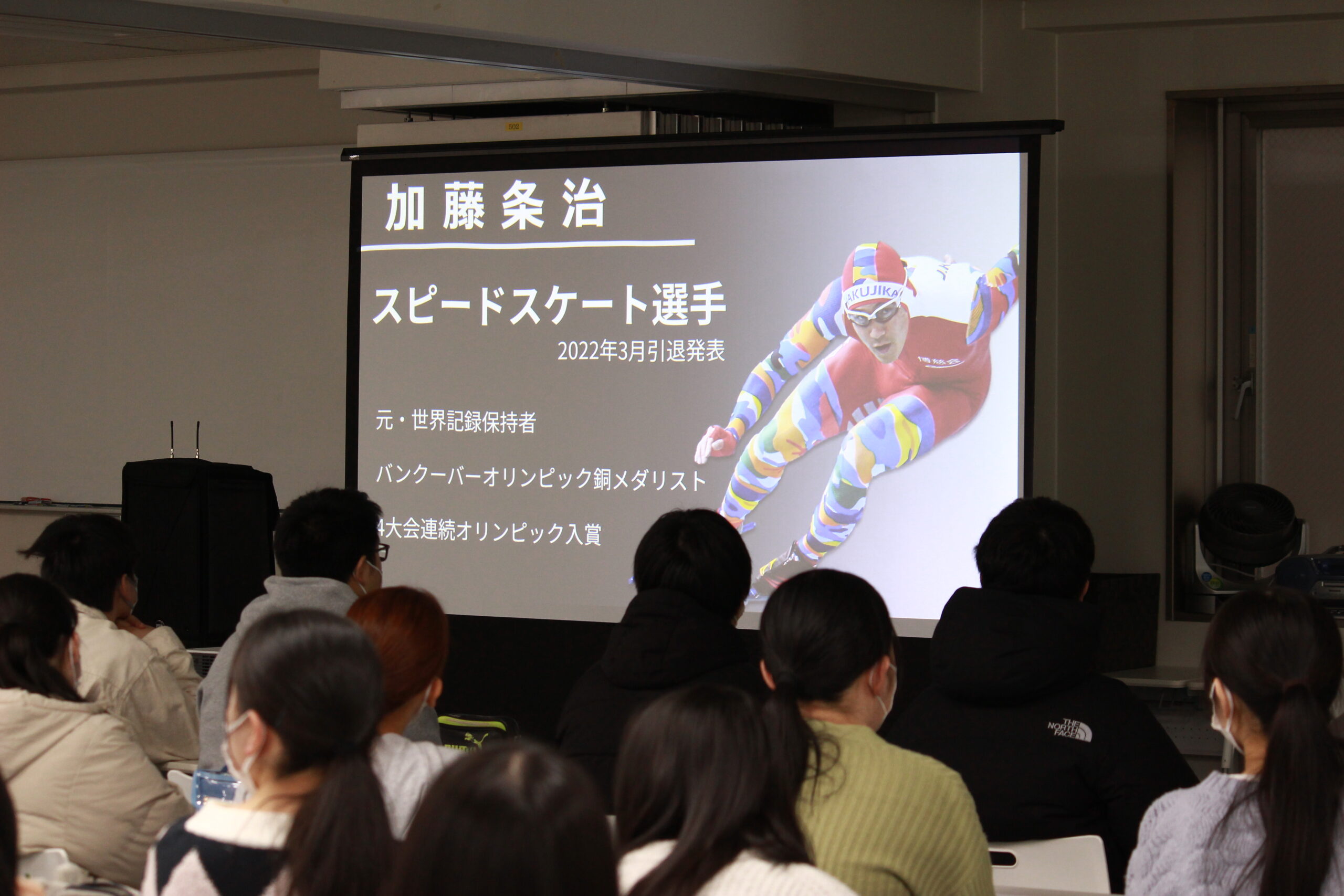 仙台医療福祉専門学校では、スピードスケート元日本代表であり、2010年バンクーバーオリンピック銅メダリストの加藤条治氏をお招きし、